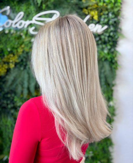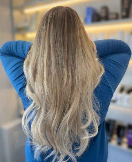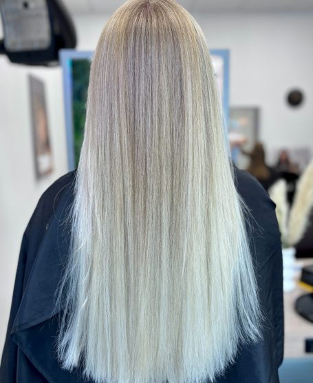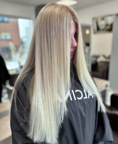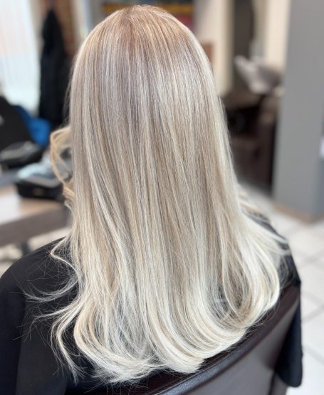 Ergebnis: Ein fast durchgehendes helles Blond, ruhig, weich und besonders clean.